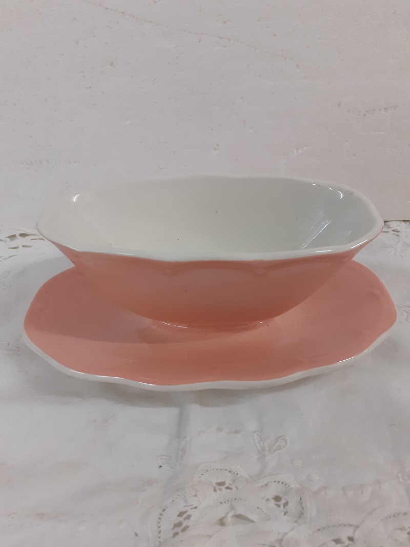 BFK – roze aardewerk jus / sauskom in goede staat. De kom zelf is 16 bij 8 cm.